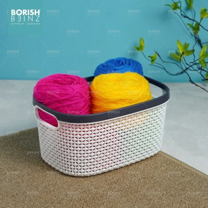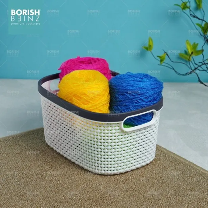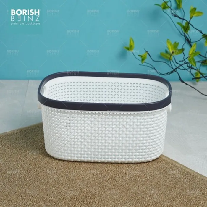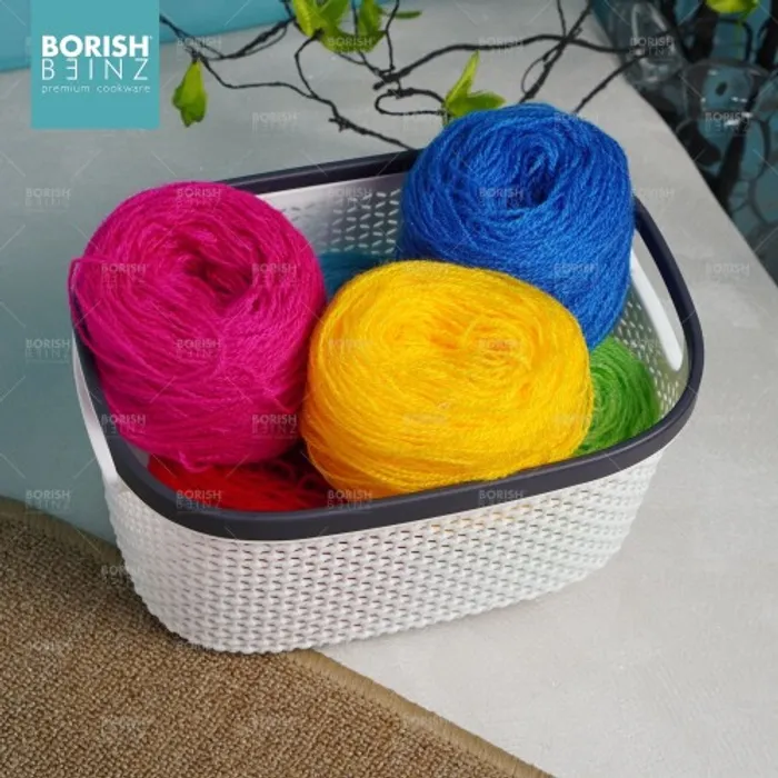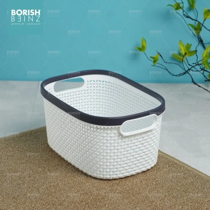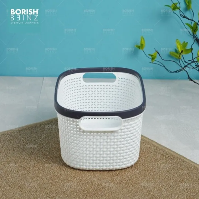 Keranjang serbaguna berbahan plastik tebal. Cocok untuk menyimpan aksesoris, kosmetik, snack, tempat souvenir.