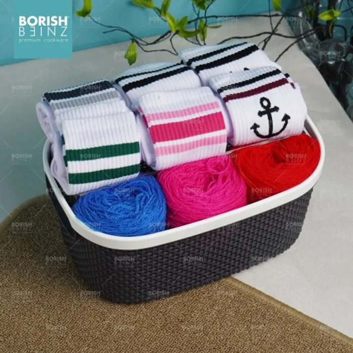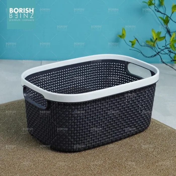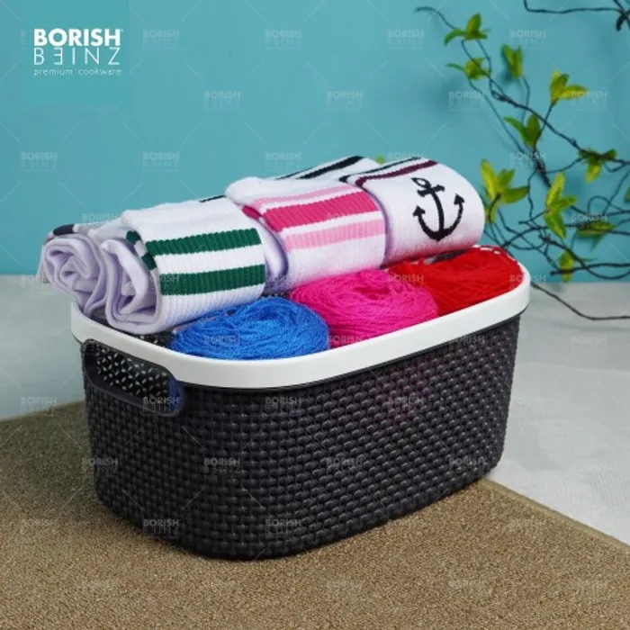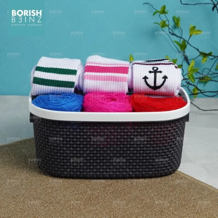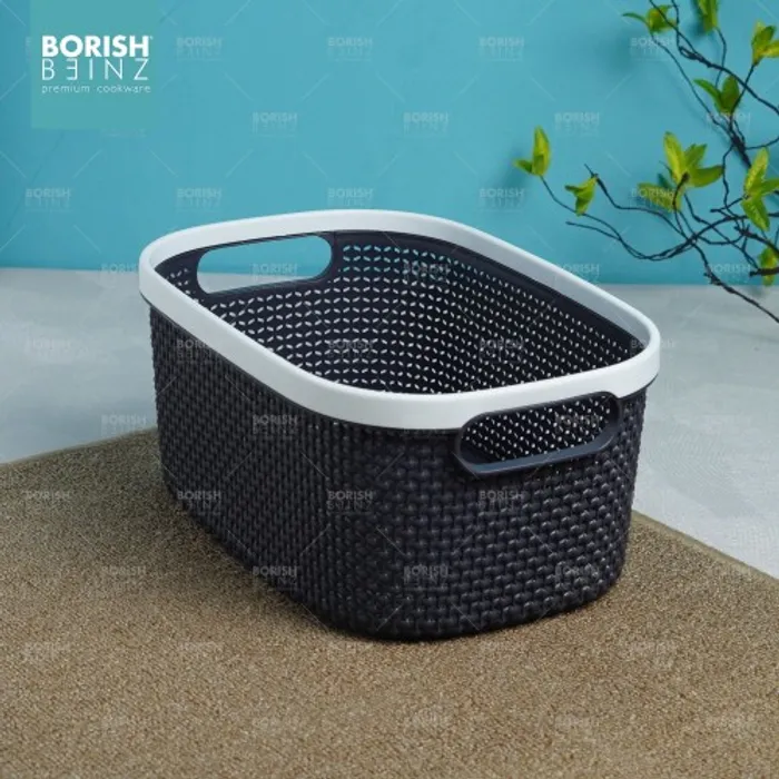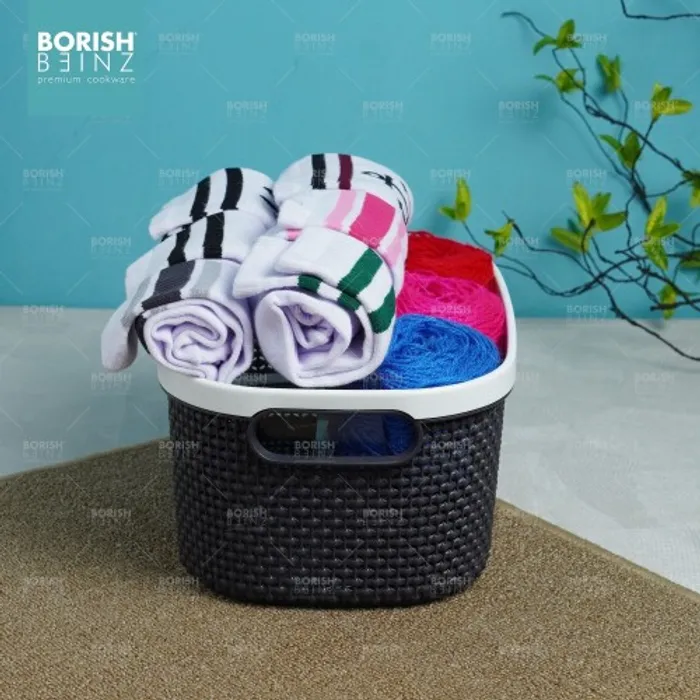 Keranjang serbaguna berbahan plastik tebal. Cocok untuk menyimpan aksesoris, kosmetik, snack, tempat souvenir.