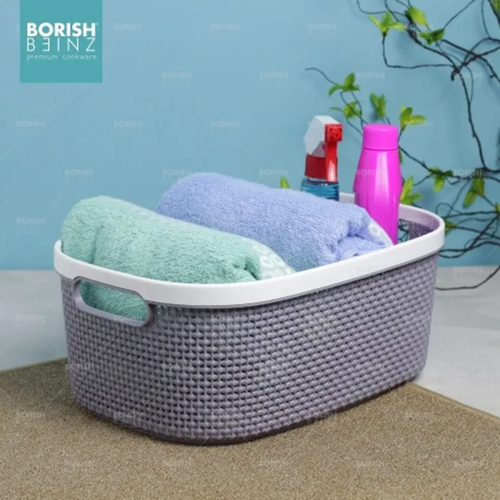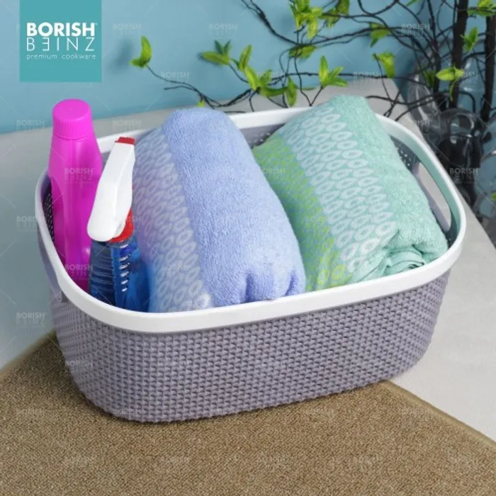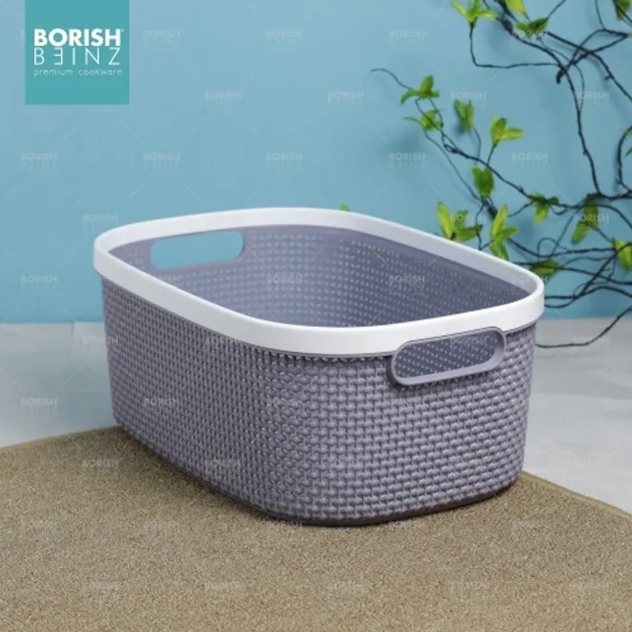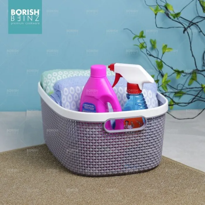 Keranjang serbaguna berbahan plastik tebal. Cocok untuk menyimpan aksesoris, kosmetik, snack, tempat souvenir.