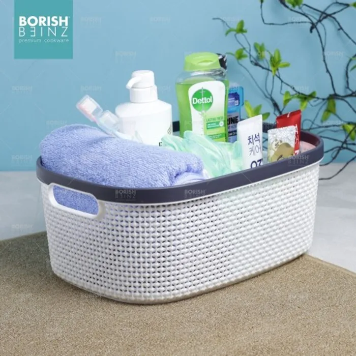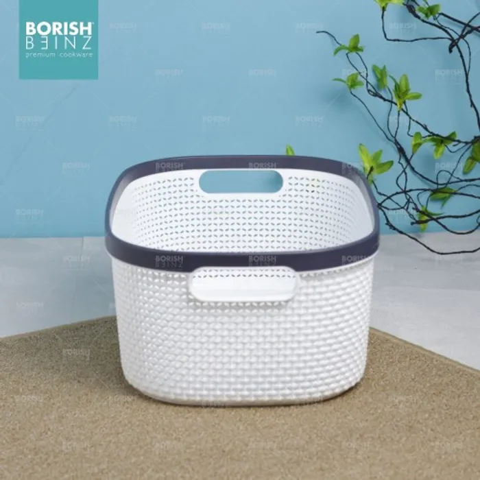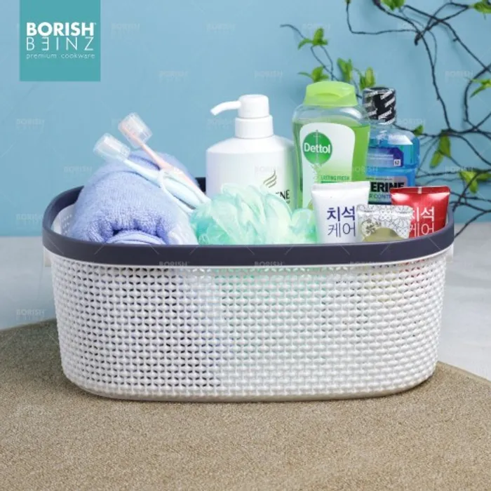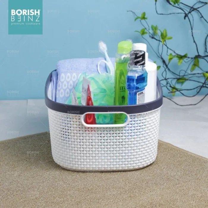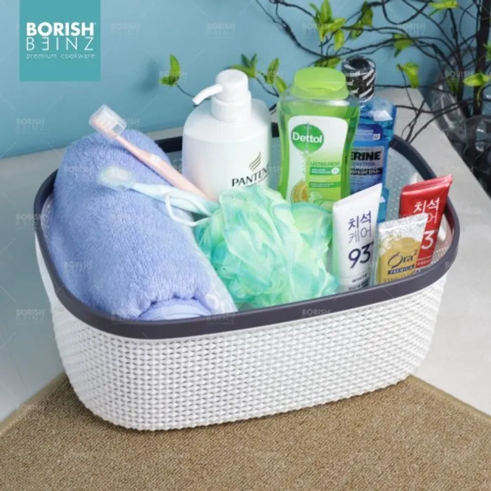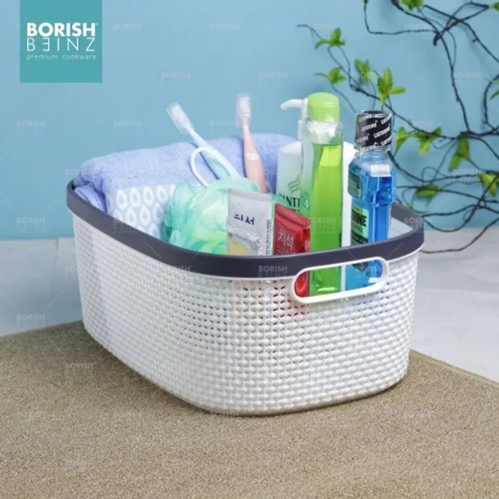 Keranjang serbaguna berbahan plastik tebal. Cocok untuk menyimpan aksesoris, kosmetik, snack, tempat souvenir.
