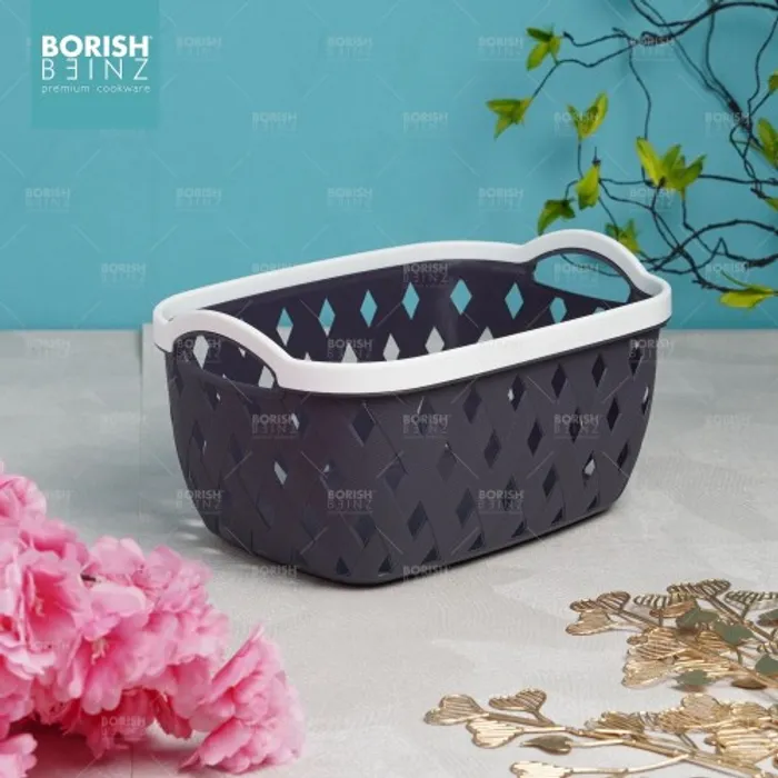 Keranjang serbaguna berbahan plastik tebal. Cocok untuk menyimpan aksesoris, kosmetik, snack, tempat souvenir.