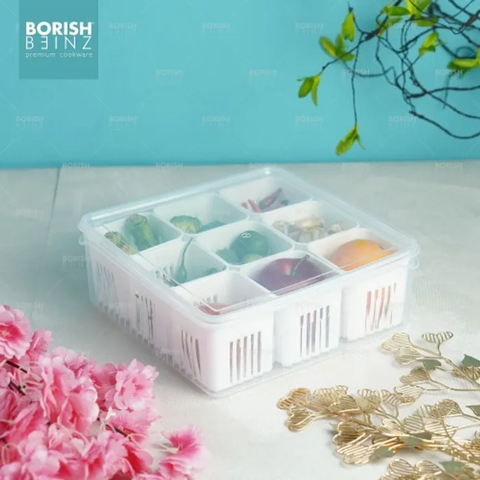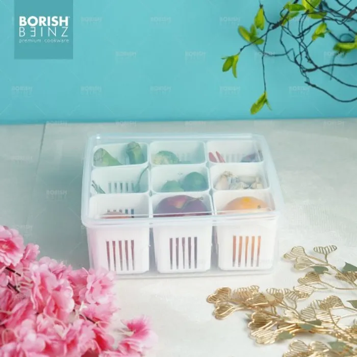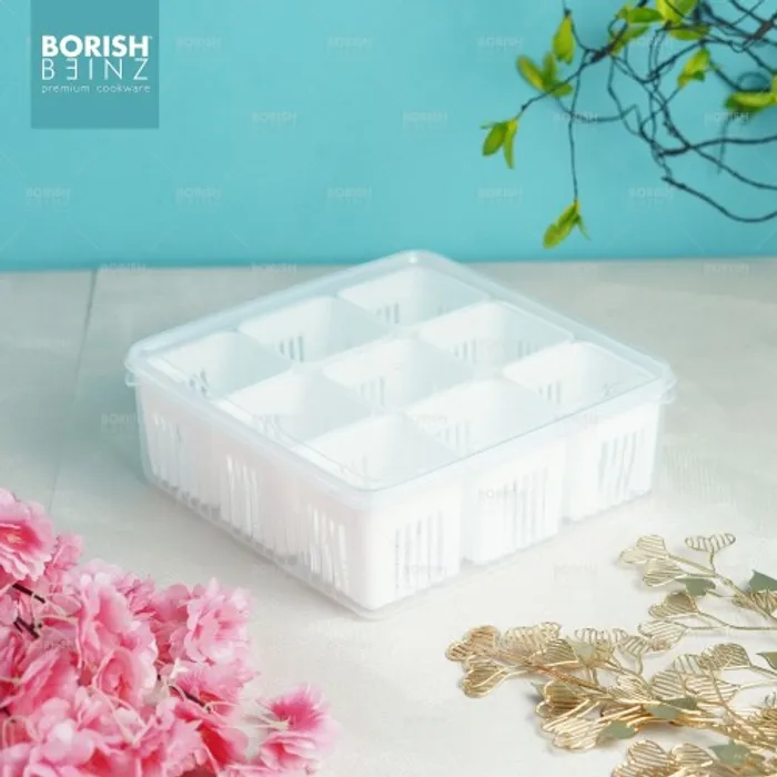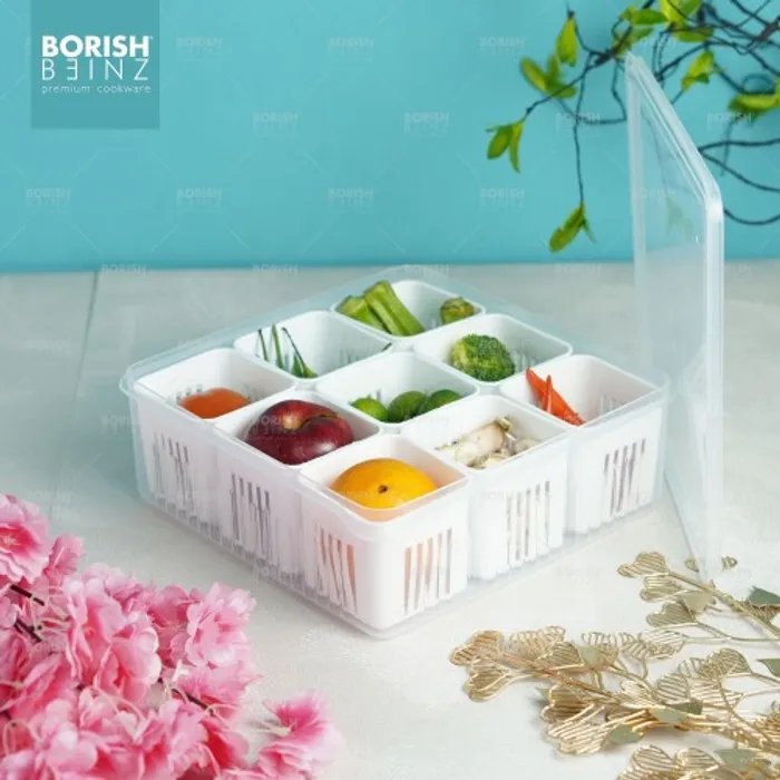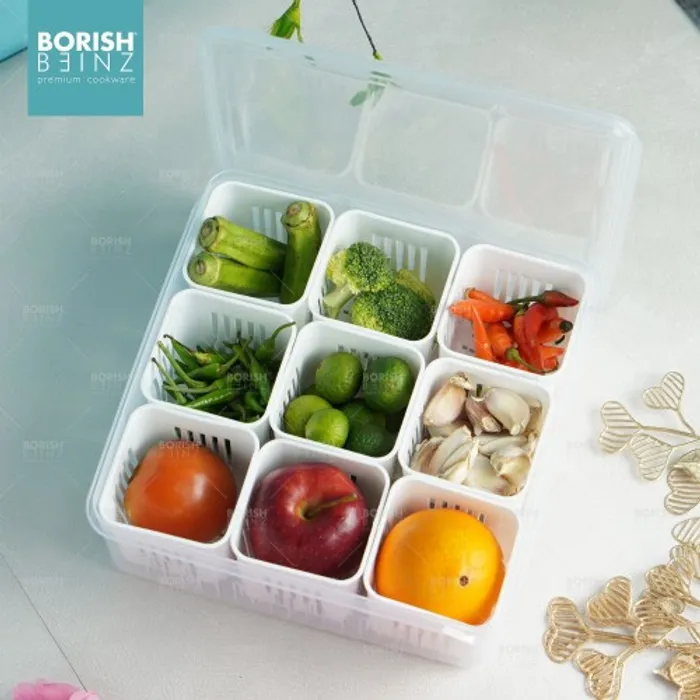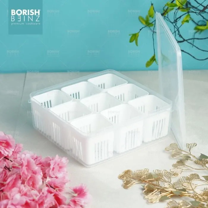 Kotak Penyimpanan dengan 9 sekat ini dapat memudahkan anda untuk menyimpan berbagai jenis bahan baku bahkan bahan makanan sekaligus.