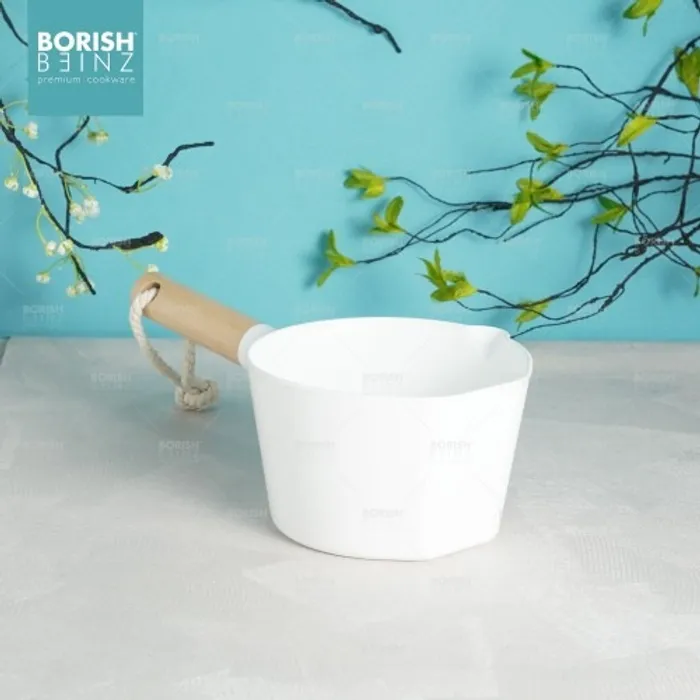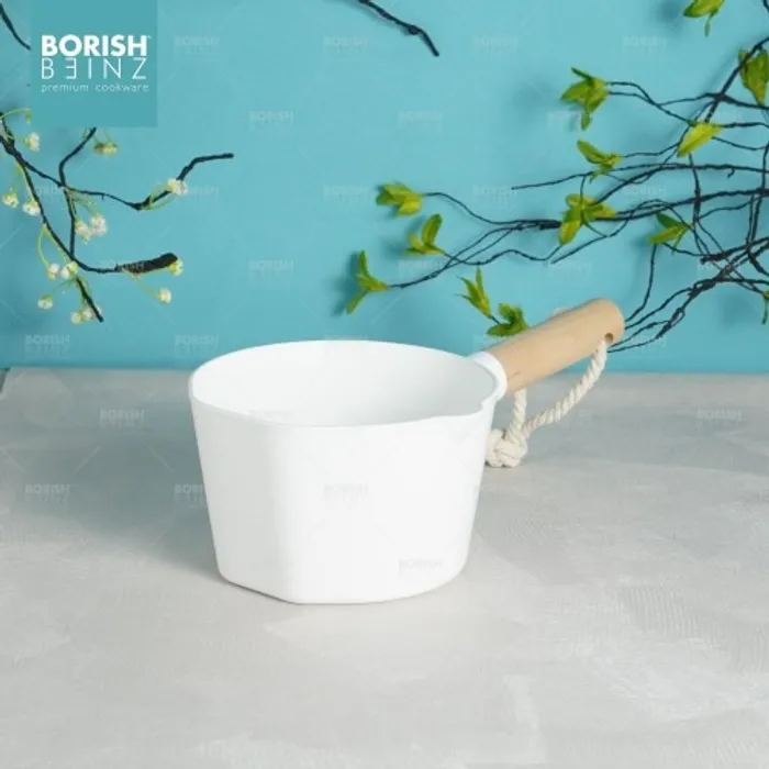 Dengan desain warna putih dan kombinasi warna kayu pada gagang gayung sehingga menambah estetika tampilan rumah.