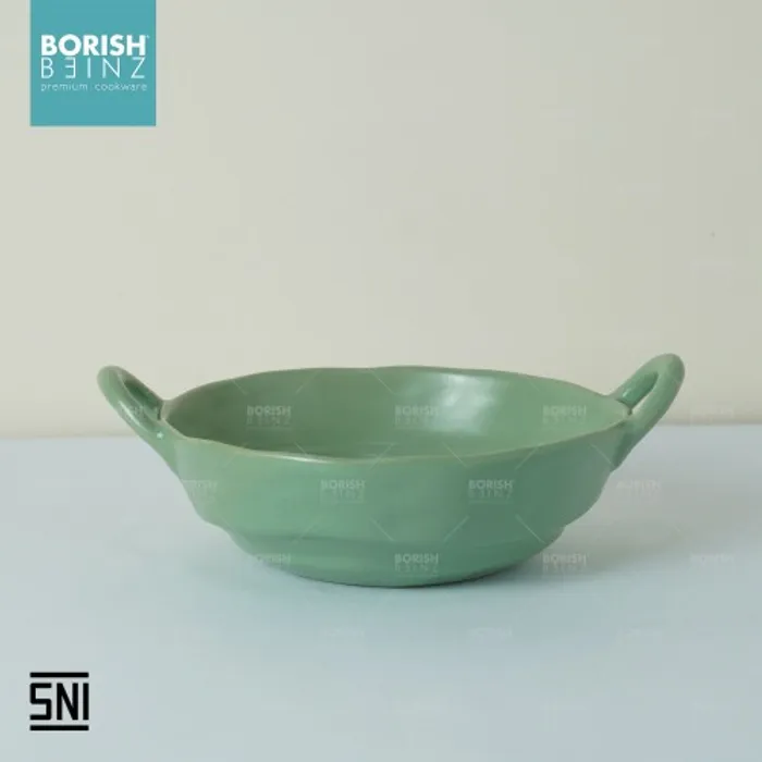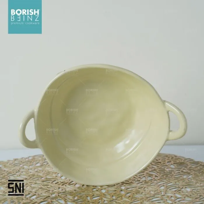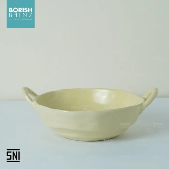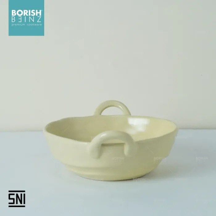 Spesifikasi Produk: 1. Berat: 465 grm 2. Diameter: dalam 6.5 inch 3. Tinggi: 5.5 cm 4. Warna: Krem , Pink , Hijau , Kuning 5. Material Ceramic 6. Ukuran diameter dengan handle 21 cm - Microwave & Dishwasher safe!!! - Harga Include Free Packaging & Bubble Wrap!!! - Memenuhi SNI (Standard Negara Indonesia) - Jaminan packaging aman sampai tujuan Seluruh produk Borish Beinz sudah melalui proses QC dgn kondisi 99%+ mulus, dikarenakan produk ini melewati proses pembakaran dgn temperatur tinggi, sehingga bintik hitam, gelembung tidak dapat dihindari (tidak mengurangi fungsi).