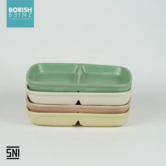 Spesifikasi Produk: 1. Berat: 730 grm 2. Panjang : 23.5 cm 3. Tinggi: 3 cm 4 Lebar : 15 cm 5. Warna: Krem , Pink , Hijau , Kuning 6. Material Ceramic - Microwave & Dishwasher safe!!! - Harga Include Free Packaging & Bubble Wrap!!! - Memenuhi SNI (Standard Negara Indonesia) - Jaminan packaging aman sampai tujuan Seluruh produk Borish Beinz sudah melalui proses QC dgn kondisi 99%+ mulus, dikarenakan produk ini melewati proses pembakaran dgn temperatur tinggi, sehingga bintik hitam, gelembung tidak dapat dihindari (tidak mengurangi fungsi).
