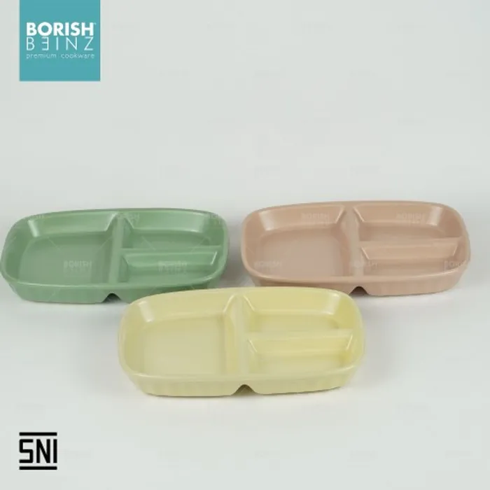 Spesifikasi Produk: 1. Berat: 867 grm 2. Panjang : 25 cm 3. Tinggi: 3 cm 4. Lebar: 16 cm 5. Warna: Kuning , Pink , Hijau 6. Material Ceramic - Microwave & Dishwasher safe!!! - Harga Include Free Packaging & Bubble Wrap!!! - Memenuhi SNI (Standard Negara Indonesia) - Jaminan packaging aman sampai tujuan Seluruh produk Borish Beinz sudah melalui proses QC dgn kondisi 99%+ mulus, dikarenakan produk ini melewati proses pembakaran dgn temperatur tinggi, sehingga bintik hitam, gelembung tidak dapat dihindari (tidak mengurangi fungsi).