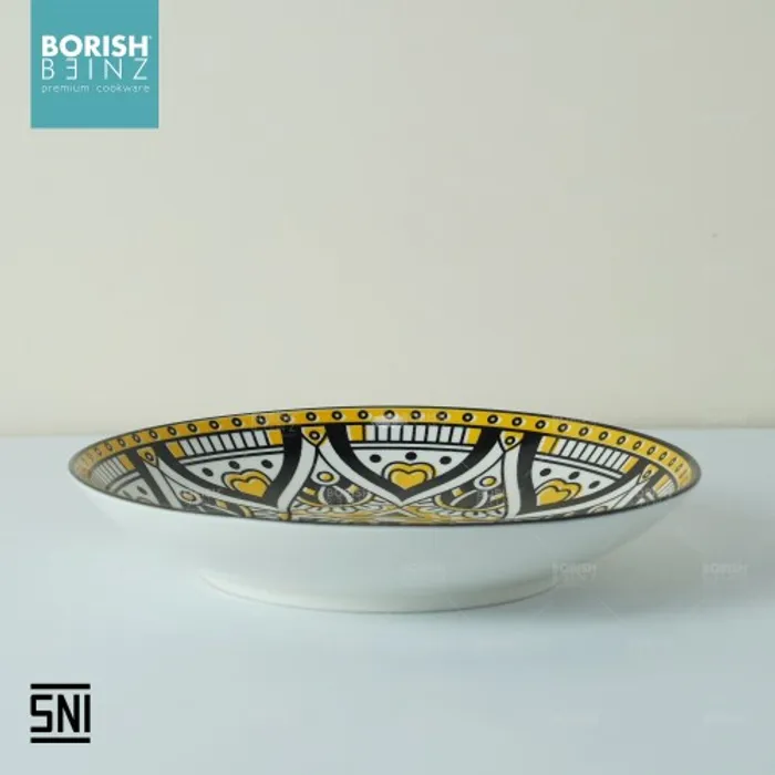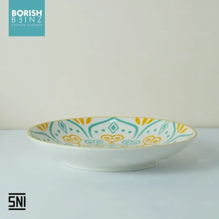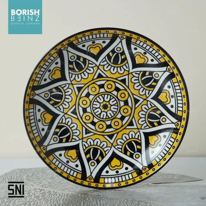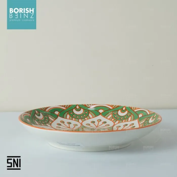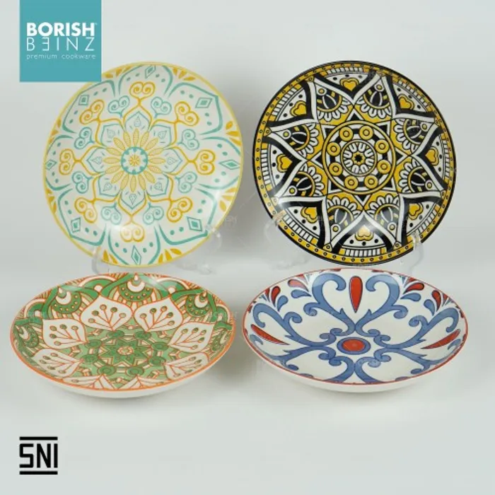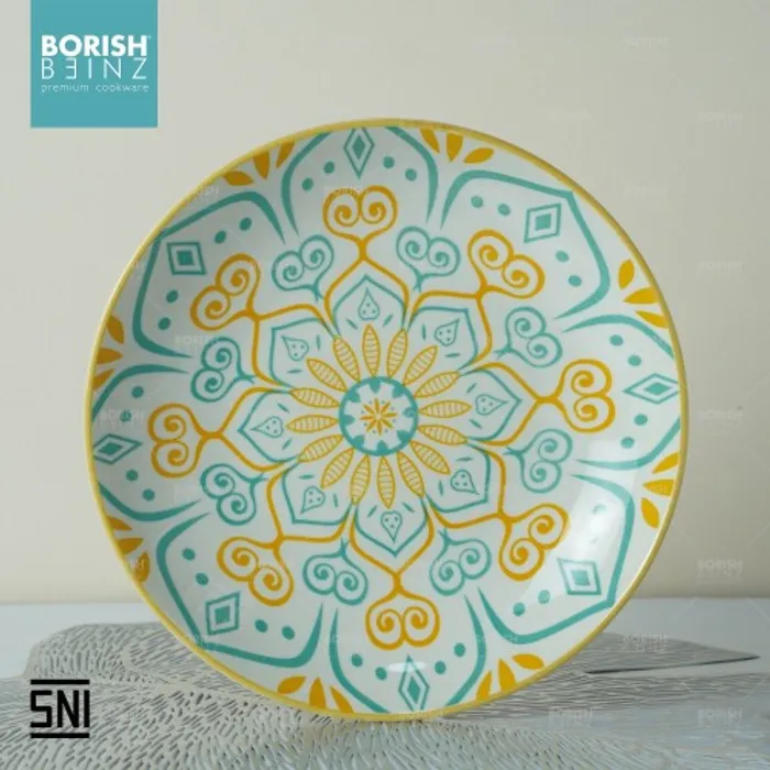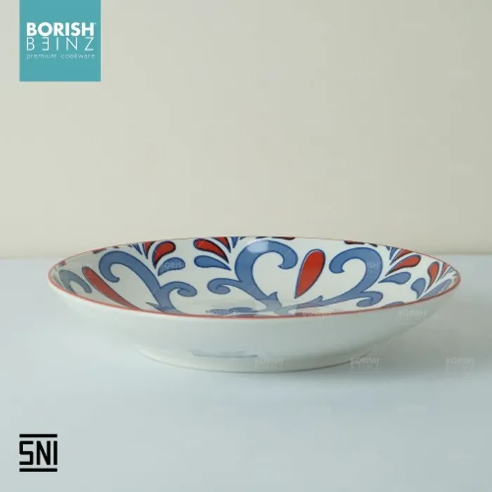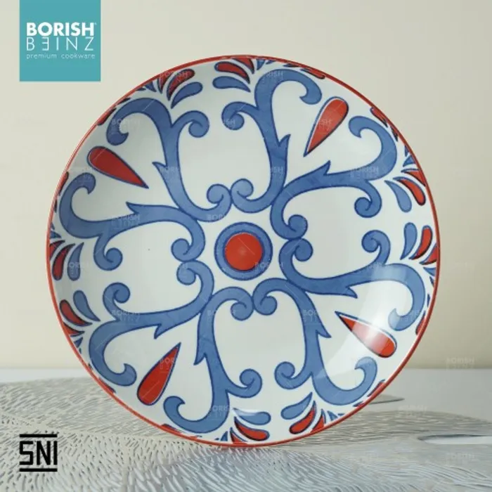 Spesifikasi Produk: 1. Berat: 351 grm 2. Diameter: dalam 8.5 inch 3. Tinggi: 4 cm 4. Lebar: 21.6 cm 5. Warna: Motif Random 6. Material Ceramic - Microwave & Dishwasher safe!!! - Harga Include Free Packaging & Bubble Wrap!!! - Memenuhi SNI (Standard Negara Indonesia) - Jaminan packaging aman sampai tujuan Seluruh produk Borish Beinz sudah melalui proses QC dgn kondisi 99%+ mulus, dikarenakan produk ini melewati proses pembakaran dgn temperatur tinggi, sehingga bintik hitam, gelembung tidak dapat dihindari (tidak mengurangi fungsi).
