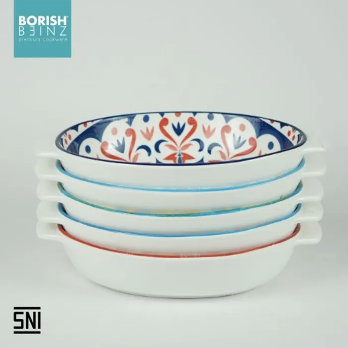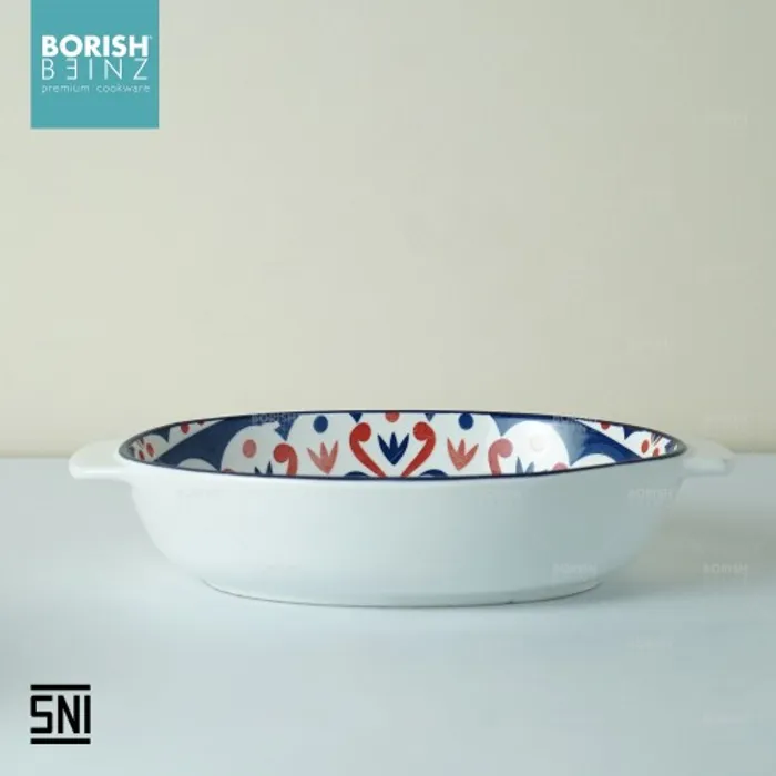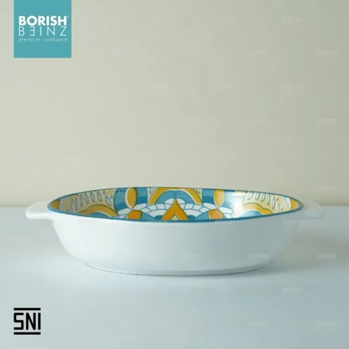 Spesifikasi Produk: 1. Berat: 536 grm 2. Diameter: dalam 9 inch 3. Tinggi: 5 cm 4. Lebar: 23 cm 5. Warna: Motif Random 6. Material Ceramic - Microwave & Dishwasher safe!!! - Harga Include Free Packaging & Bubble Wrap!!! - Memenuhi SNI (Standard Negara Indonesia) - Jaminan packaging aman sampai tujuan Seluruh produk Borish Beinz sudah melalui proses QC dgn kondisi 99%+ mulus, dikarenakan produk ini melewati proses pembakaran dgn temperatur tinggi, sehingga bintik hitam, gelembung tidak dapat dihindari (tidak mengurangi fungsi).