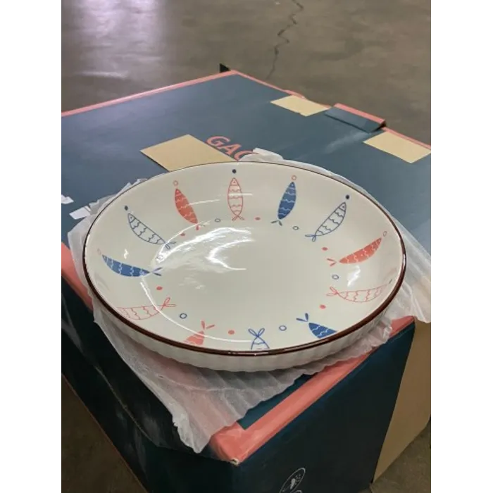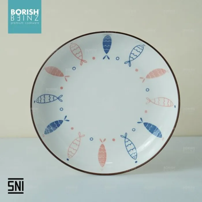 Spesifikasi Produk: 1. Berat: 413 grm 2. Diameter: dalam 8 inch 3. Tinggi: 3.8 cm 4. Lebar: 20.3 cm 5. Warna: Putih Motif Ikan 6. Material Ceramic - Microwave & Dishwasher safe!!! - Harga Include Free Packaging & Bubble Wrap!!! - Memenuhi SNI (Standard Negara Indonesia) - Jaminan packaging aman sampai tujuan Seluruh produk Borish Beinz sudah melalui proses QC dgn kondisi 99%+ mulus, dikarenakan produk ini melewati proses pembakaran dgn temperatur tinggi, sehingga bintik hitam, gelembung tidak dapat dihindari (tidak mengurangi fungsi).