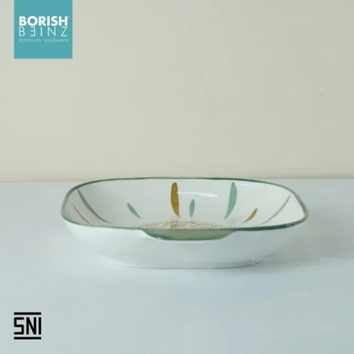 Spesifikasi Produk: 1. Berat: 505 grm 2. Diameter: dalam 8.5 inch 3. Tinggi: 4 cm 4. Lebar: 21.5 cm 5. Warna: Putih Motif 6. Material Ceramic 7. Ukuran diameter dengan handle 23 cm - Microwave & Dishwasher safe!!! - Harga Include Free Packaging & Bubble Wrap!!! - Memenuhi SNI (Standard Negara Indonesia) - Jaminan packaging aman sampai tujuan Seluruh produk Borish Beinz sudah melalui proses QC dgn kondisi 99%+ mulus, dikarenakan produk ini melewati proses pembakaran dgn temperatur tinggi, sehingga bintik hitam, gelembung tidak dapat dihindari (tidak mengurangi fungsi).