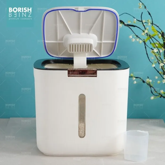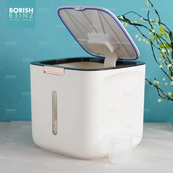 Dispenser beras otomatis anti kutu dan anti lembab, dilengkapi cangkir untuk mengukur. Tempat beras dengan menggunakan material yang aman untuk beras yang disimpan awet dan tidak berkutu, tidak merusak kualitas beras yang disimpan.