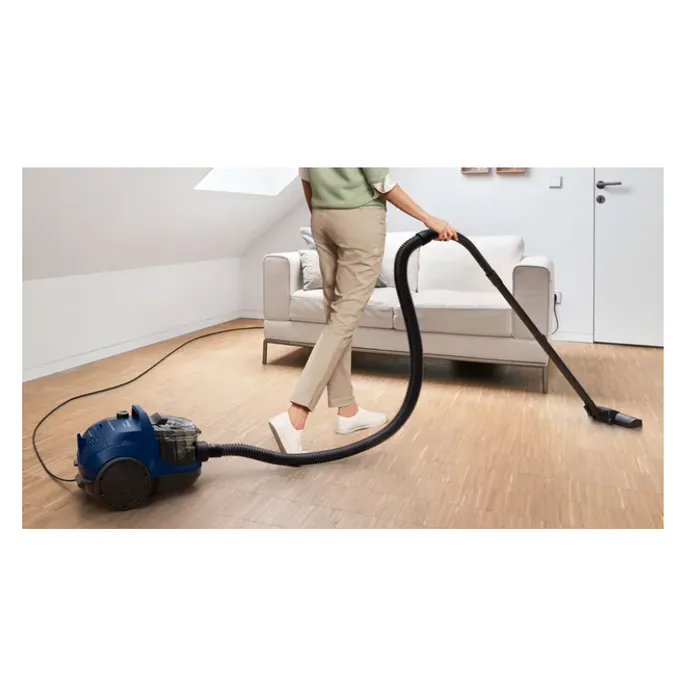 Penyedot debu tanpa kantung yang kuat dalam desain ringkas dengan kotak debu besar untuk pembersihan lebih cepat.