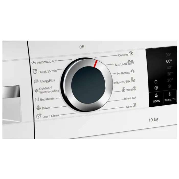 - Program tambahan: Cottons, Mix Load, Synthetics, Dellicates/Silk, Wool, Rinse Spin, Drum Clean, Down, Jeans, Bedsheets, AllergyPlus, Outdoor/Waterproofing, Quick 15 min