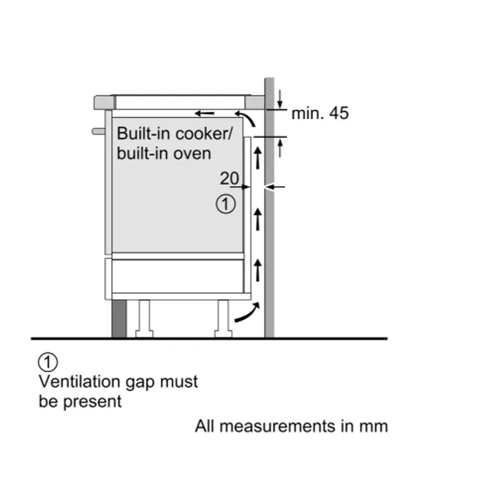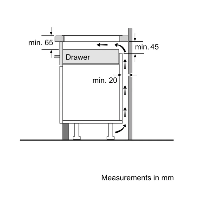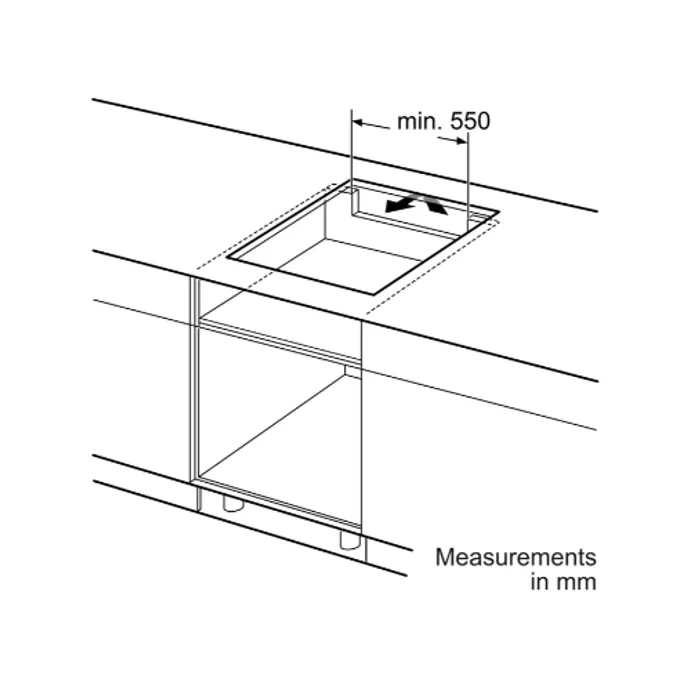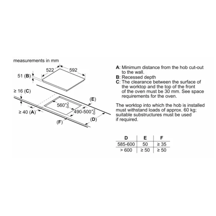 - Ukuran ceruk yang diperlukan untuk instalasi (HxWxD mm): 51 x 560 x (490 - 500)