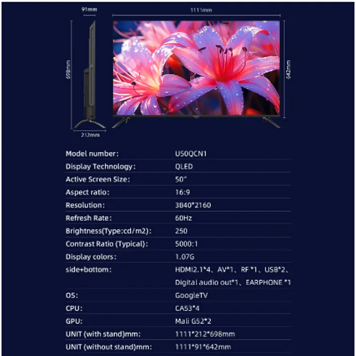 Changhong U50QCN1 QLED TV 4K 50inch Google Smart TV Digital TV U50QCN1