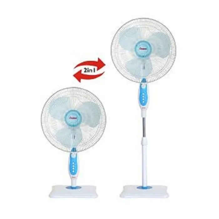 Kipas Angin Twino dengan 2 fungsi peletakkan (Stand & Desk) , dengan bilah kipas berukuran 16 inch. Memiliki 3 level kecepatan dan tombol berhenti yang dapat digunakan sesuai dengan kebutuhan.