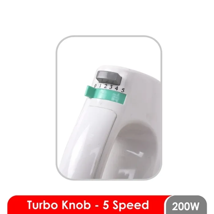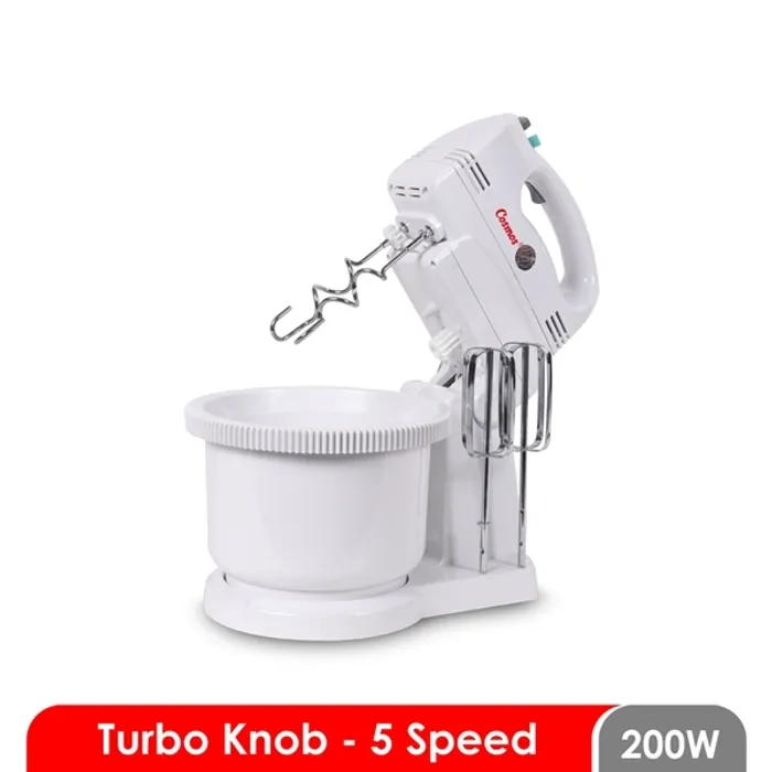 Merupakan 2 in 1 Mixer yang dapat diubah menjadi hand/stand sesuai kebutuhan, dilengkapi bowl/mangkok dengan kapasitas 2.3 liter yang berputar otomatis sehingga adonan tercampur merata tanpa perlu diaduk dan 2 set pengocok/pengaduk, beater untuk adonan ringan hingga sedang seperti telur, cream, cake