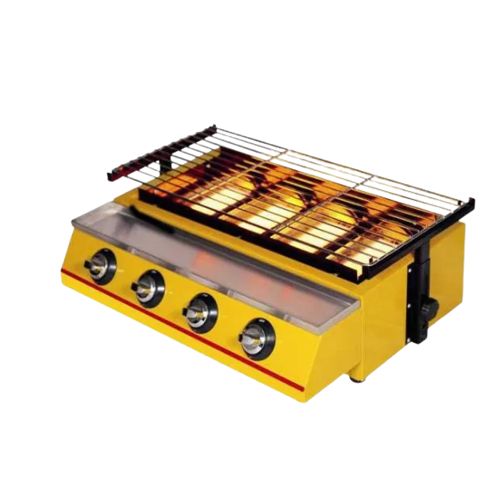 Alat pemanggang kompor Gas tekanan rendah dengan 4 Tungku hadir untuk melengkapi bisnis usaha maupun perlengkapan dapur rumah Anda, bisa untuk usaha sosis bakar, Ayam bakar, kompor panggang, Steak, Ikan bakar, Otak-otak maupun untuk panggangan Sate dengan keistimewahan tanpa perlu khawatir memanggang maupun memasak tanpa asap, Ketinggian panggangan dapat dengan mudah diatur, Ideal dalam penempatan & Mudah untuk dibersihkan.