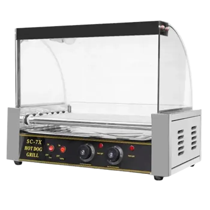 Mesin Hot dog roller ini dapat memanggang beberapa sosis sekaligus sehingga dapat mempercepat proses pemanggangan, roll – roll yang selalu berputar membuat sosis matang sempurna. Selain mudah dalam proses penggunaannya, mesin hot dog roller ini juga mudah dibersihkan karena setiap bagiannya dapat dilepas. Pada bagian kakinya juga terdapat bahan karet sehingga nyaman untuk diletakkan dimana saja.
