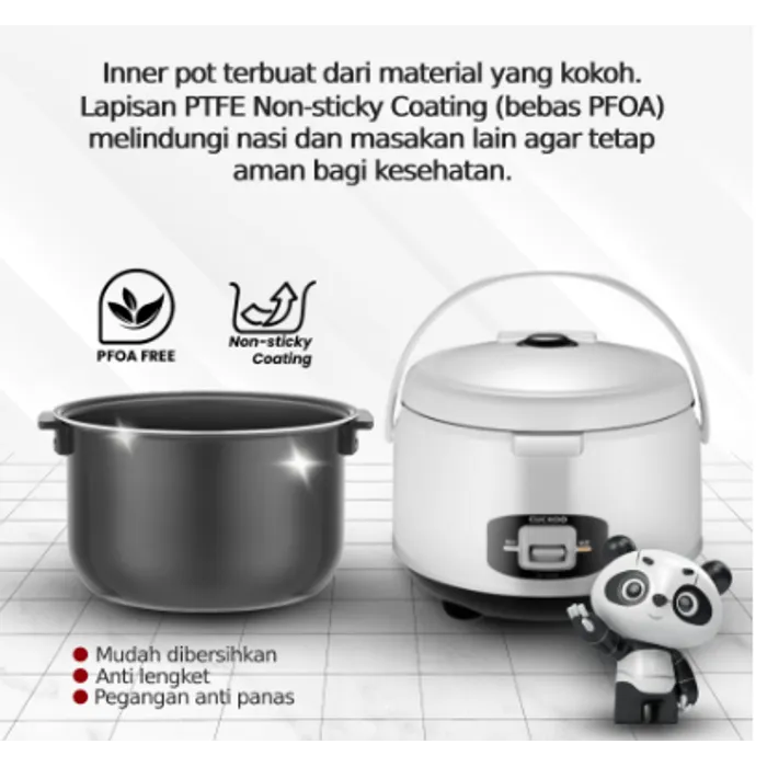 2. Inner pot dengan lapisan PTFE Non-sticky Coating (bebas PFOA).