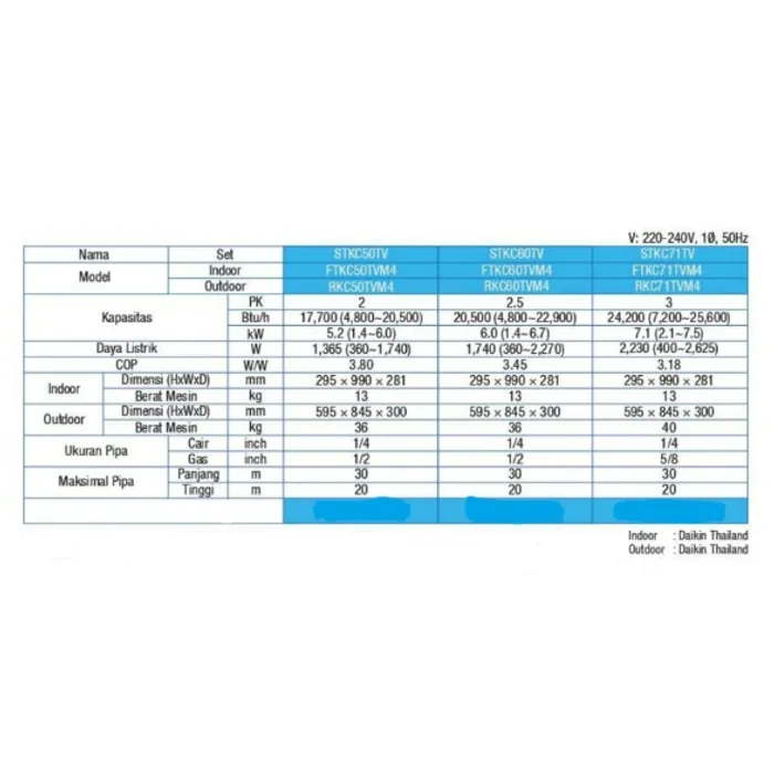 Deskripsi Daikin AC Wall Mounted Split Inverter Star Thailand 2 1/2 PK - FTKC60TVM4 + RKC60TVM4