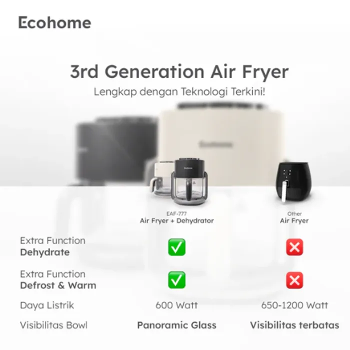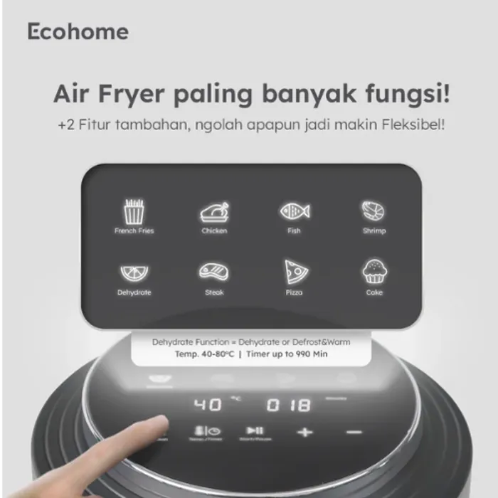 Bisa untuk defrost makanan seperti daging dengan menggunakan function “Dehydrate” dan atur suhunya di 40-80°C