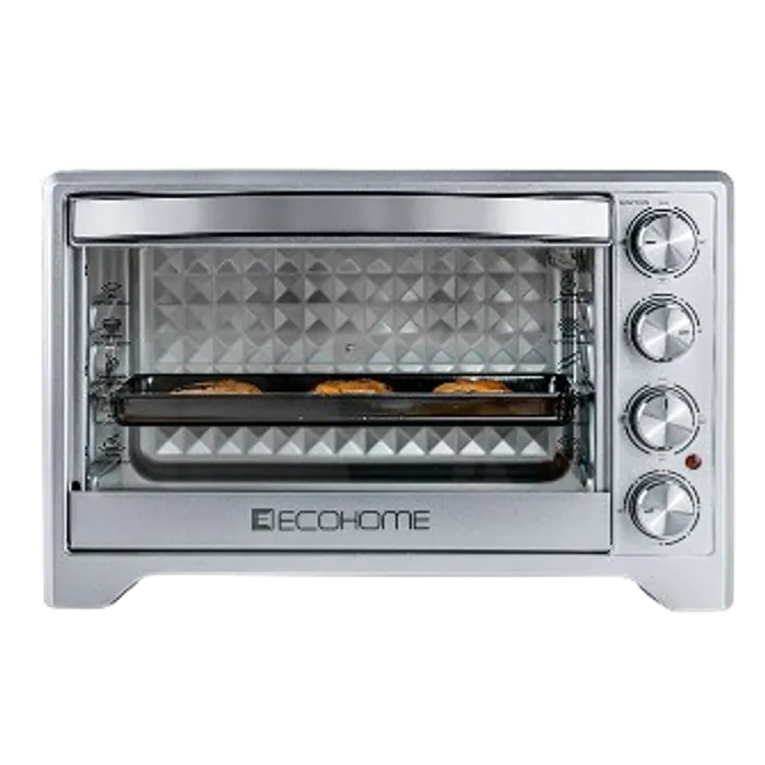 ECOHOME EOP 888 Platinum Oven - Silver Platinum [38 L] adalah oven yang dilengkapi teknologi diamond cavity yang dapat memanggang lebih merata. Desain dinamis warna silver yang elegan dan kapasitas yang besar. Dilengkapi dengan convention (kipas) lampu dan rotiseries untuk memanggang ayam, diamond surface heat reflector dan 4 heating element (4 elemen panas stainless steel), serta suhu yang bisa diatur 100-250°C, timer untuk waktu lama memanggang dan bell ring jika sudah selesai. Memiliki daya 220 V ~ 50/450w-900 W. Terdapat pengaturan untuk api atas saja (450 W), api bawah saja(450 W) ataupun api atas bawah bersamaan (900 W). Mudah dibersihkan dan digunakan. Kapasitas 38 Liter dengan ru