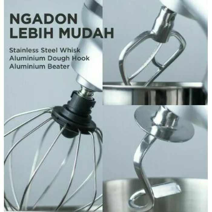 Buat adonan makanan ataupun kue yang lezat jadi mudah, cepat dan menyenangkan. Stand Mixer ini mampu bekerja secara cepat dan professional dengan teknologi tinggi dan desain yg kokoh. Pilihan tepat untuk kebutuhan dapur anda. Cocok untuk membuat adonan roti, kue, ataupun mie.