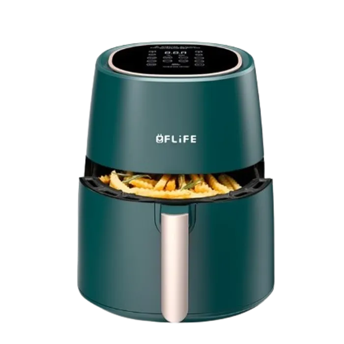 Air Fryer AF45-700LB dengan kapasitas 4.5 Liter memiliki desain perpaduan Dark Green dan Gold yang menawan membuat FLiFE Air Fryer menjadi lebih elegan. Kami membuat cara memasak yang lebih sehat daripada memasak menggunakan minyak.