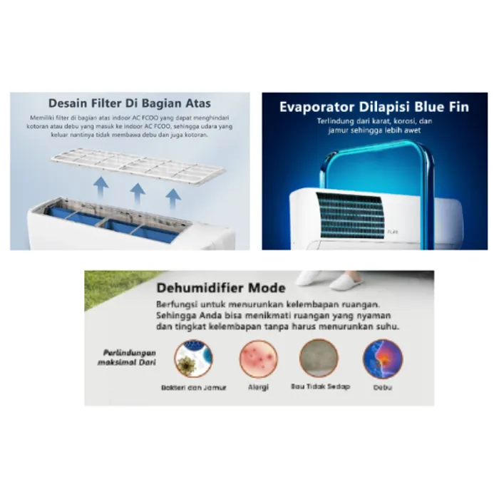 Dimensi Indoor 708 x 260 x 185 mm