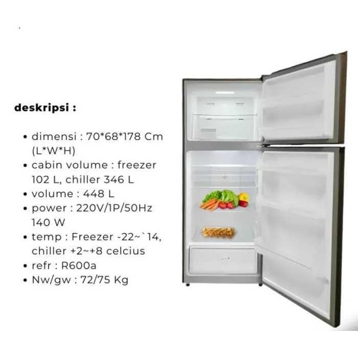 • 2 Compartments (Top : Freezer, Bottom: Fridge)