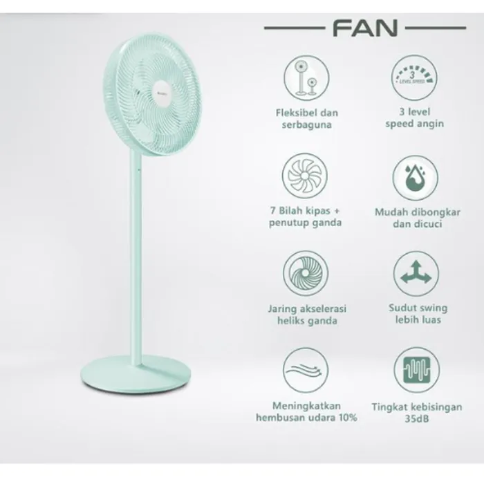 Kipas Angin Serbaguna dengan 2 model. Desain Ergonomis tombol kontrol kenop dibagian atas. Mudah dibongkar dan dicuci, desain kunci putar depan belakang sehingga mudah dibersihkan. Tampilan minimalis, simple dan elegan.