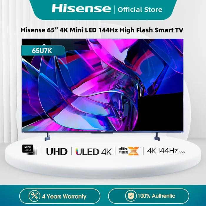 Hisense 65U7K 65 inch 4K Mini ULED High Flash Smart TV Dual Band Wifi-Dolby Vision & Audio-MEMC-eARC-Bluetooth-HDMI-USB