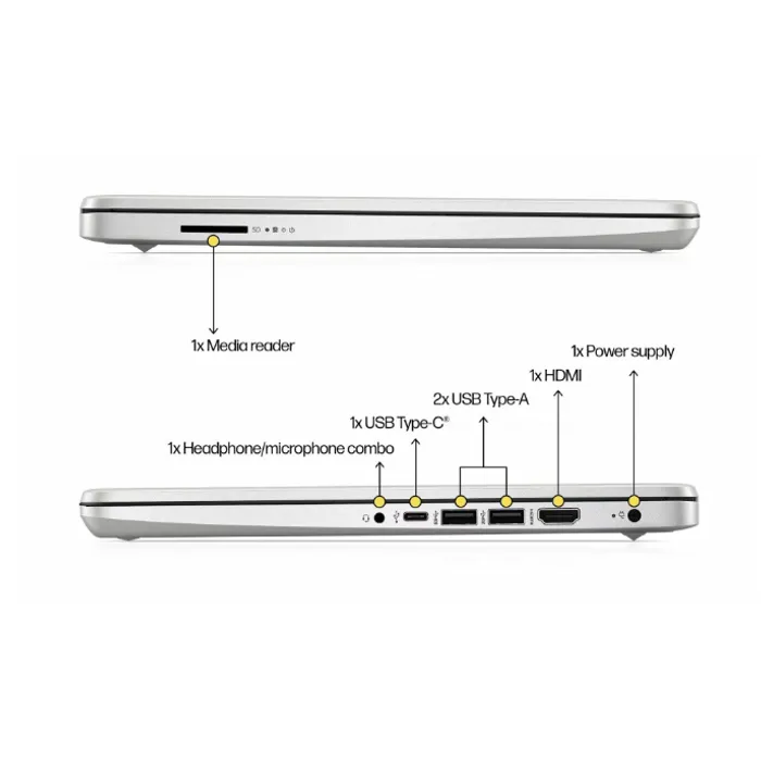 1 USB Type-C® 5Gbps signaling rate (supports data transfer only and does not support charging or external monitors); 2 USB Type-A 5Gbps signaling rate; 1 AC smart pin; 1 HDMI 1.4b; 1 headphone/microphone combo