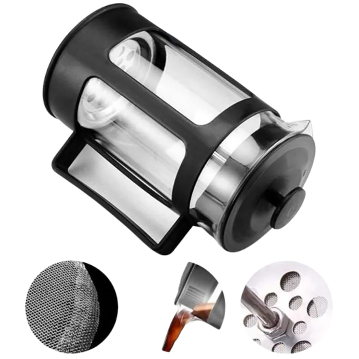 Pot kopi french press ini terbuat dari bahan kaca transparan sehingga Anda dapat melihat proses pembuatan kopi dengan mudah.