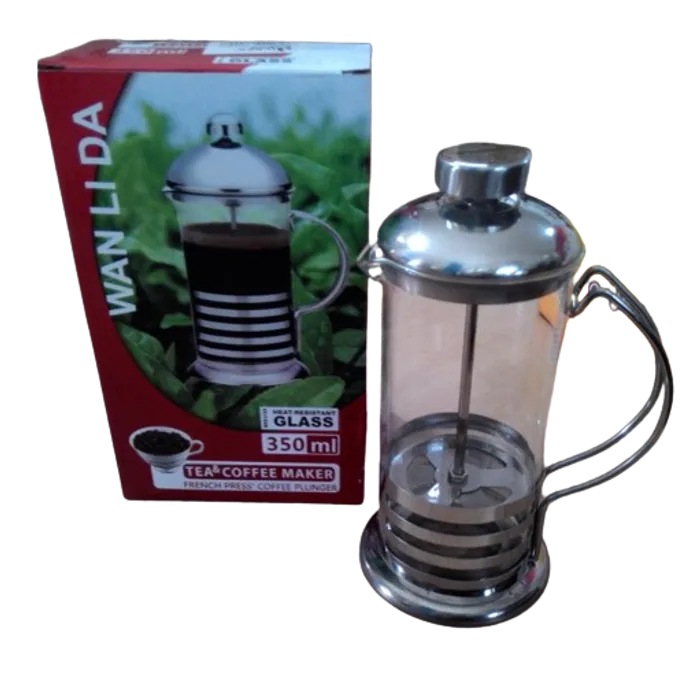 - Bahan body terbuat dari kaca - Frame terbuat dari stainless steel berwarna chrome - Plunger halus sehingga ampas kopi tersaring dengan baik - 1 kali press bisa digunakan untuk membuat 3 cangkir kopi - Barang baru dan masih disegel - Mudah dicuci dan dibersihkan