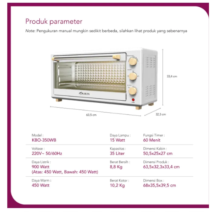 Kirin Beauty Oven KBO-350WB merupakan inovasi terbaru dari Kirin & menjadi Omni oven 35L pertama dengan wide body yang dapat memanggang 2 loyang berdampingan