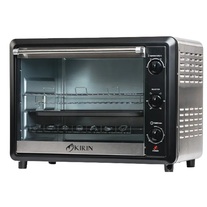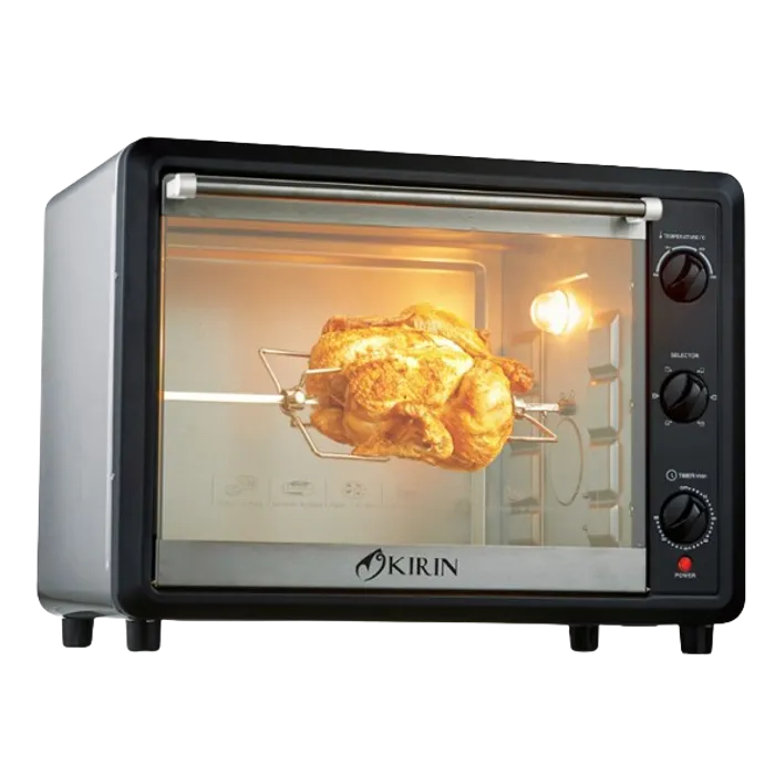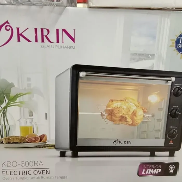 Kirin Oven KBO-600RA, oven listrik dengan kapasitas hingga 60 L, memiliki elemen pemanas atas dan bawah dan terbuat dari stainless steel, dilengkapi dengan temperatur kontrol dengan suhu maksimal 250C, lampu indikator, pengatur waktu dengan jangka maksimal 60 menit, dan juga Rotisserie yang merupakan cara memasak di mana daging yang akan dimasak ditusuk pada satu tongkat (tongkat rotisserie) kemudian digantungkan di dalam oven.