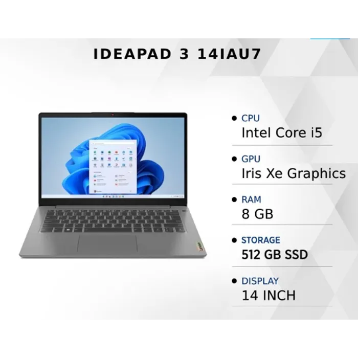 i3-1215U/SSD 512GB M2 2242 NVME /8GB Onboard DDR4 3200/Integrated/14" FHD 250N AG/W11/ARCTIC GREY/720p Webcam/Mic/2Cell 38Wh/OHS/Backlit KB/2Y Premium Care