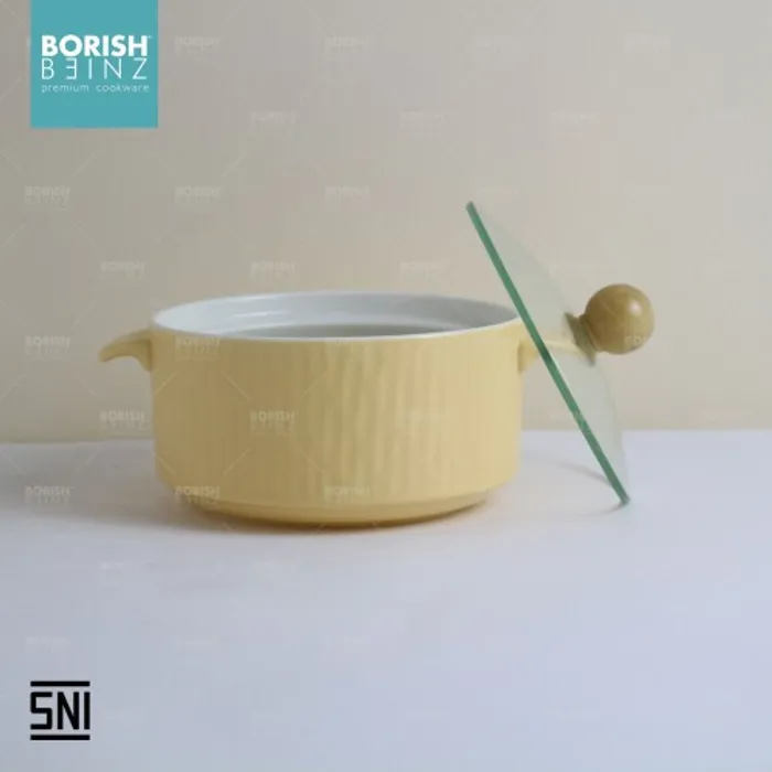 Spesifikasi Produk: 1. Berat: 832 grm 2. Tinggi: 7.9 cm 3. Lebar: 15 cm 4. Warna: Kuning , Biru 5. Material Ceramic 6. Ukuran tinggi dengan lid 11.5 cm 7. Ukuran diameter dengan handle 20 cm - Microwave & Dishwasher safe!!! - Harga Include Free Packaging & Bubble Wrap!!! - Memenuhi SNI (Standard Negara Indonesia) - Jaminan packaging aman sampai tujuan Seluruh produk Borish Beinz sudah melalui proses QC dgn kondisi 99%+ mulus, dikarenakan produk ini melewati proses pembakaran dgn temperatur tinggi, sehingga bintik hitam, gelembung tidak dapat dihindari (tidak mengurangi fungsi).