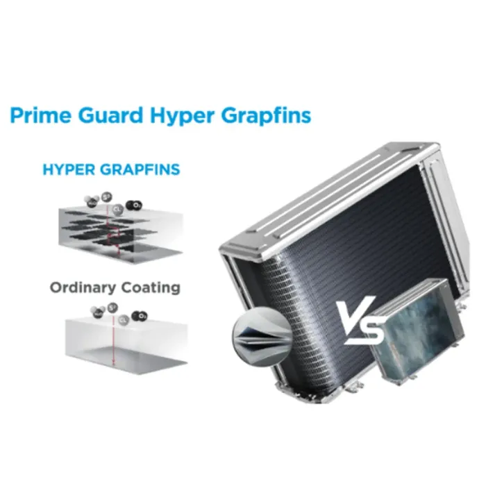 Dengan lapisan hyper grapfins pada mesin outdoor, 12.5x lebih tahan korosi dibandingkan Blue Fin.