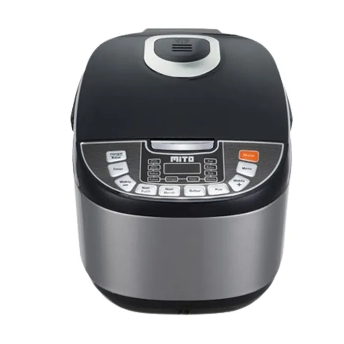 Mito R5+ (Plus) 8in1 Digital Rice Cooker 2L adalah rice cooker new Series dari Mito yang dirancang dalam 8 fungsi dengan desain simple dan memiliki timer dan display digital, sehingga memudahkan Anda untuk melihat proses kematangan. Dengan pemanas 3D 3 elemen yang terletak di kanan kiri dan bawah yang mempercepat proses pemasakan secara merata. Dilengkapi wajan pemasak dengan 5 lapis yang terbuat dari Granit Coating berkualitas.