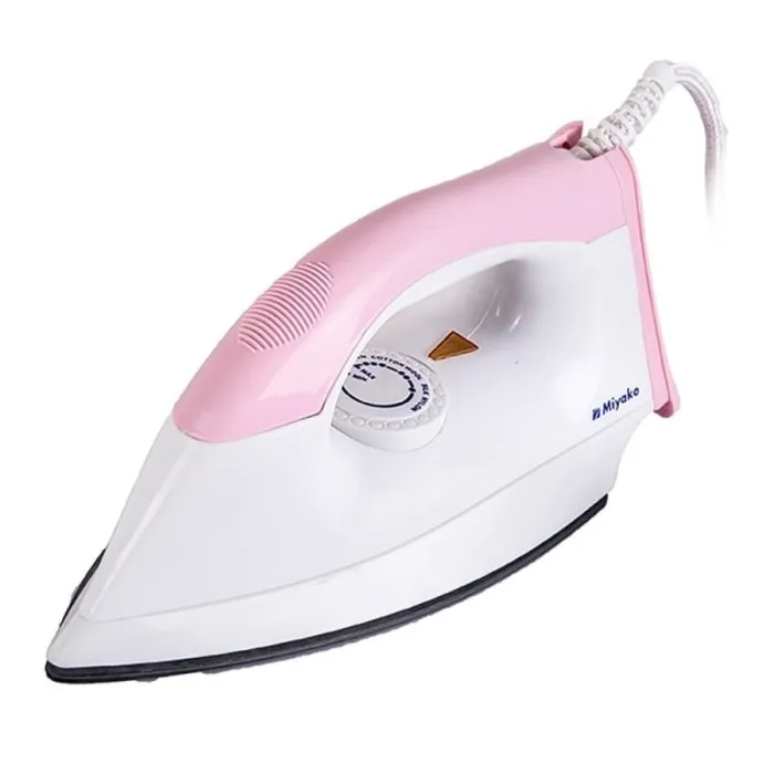 Miyako EI-1000 M Electric Iron, Setrika listrik yang fungsional dengan alas yang terbuat dari anti lengket, kegiatan menyetrika akan lebih mudah dan aman. Bagian bawah setrika didesain sedemikian rupa sehingga dapat menjangkau sisi baju yang sulit sekalipun. Handle setrika juga didesain ergonomis yang memberikan pegangan yang nyaman meskipun dipakai berjam-jam. Dengan alas yang terbuat dari teflon dan anti lengket, kegiatan menyetrika akan lebih mudah dan aman. Tak hanya itu, dengan bodi yang tidak cepat panas, Anda akan nyaman menggunakannya berjam-jam. Setrika ini memiliki sambungan kabel yang dapat digerakkan dan fleksibel. Hal ini tentunya akan memudahkan Anda ketika menyetrika dengan aman. Dan juga setrika ini bekerja pada voltase 220 Volt dan menggunakan daya 395 Watt.
