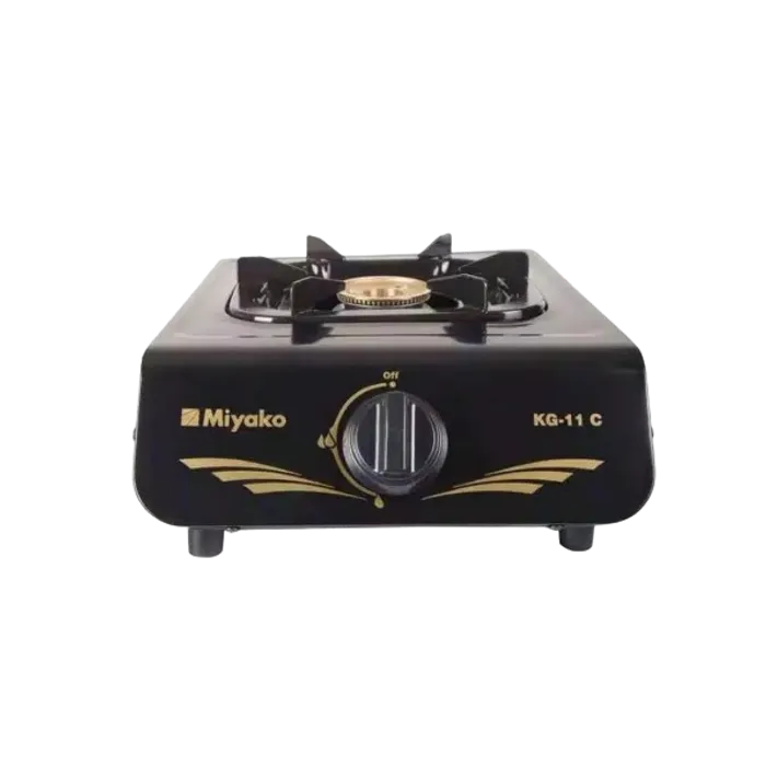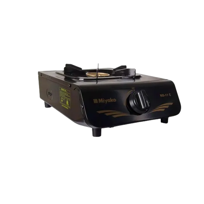 Miyako KG-11C - kompor gas 1 tungku, merupakan kompor gas 1 tungku yang ringan dan mudah dibersihkan. Memiliki efisiensi 64.9% dan asupan panas sebesar 1.76 kW yang berarti hemat gas. Lengkap dengan keenam penyangganya yang menjadikan setiap perlengkapan memasak seperti fry pan, panci, wajan dan lainnya dapat digunakan secara maksimal.