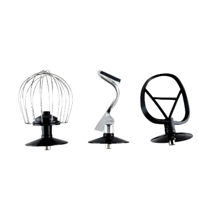 Mixer ini dilengkapi dengan 1 pengaduk adonan (dough hook), 1 buah pengalis dan 1 pengocok (beater) yang terbuat dari bahan stainless steel. Pengaduk adonan mempermudah semua kerja keras dalam menguleni adonan berat, seperti roti dan pizza. Dough Hook akan mendistribusikan ragi secara merata sehingga gluten tepung akan mengembang dengan maksimal.