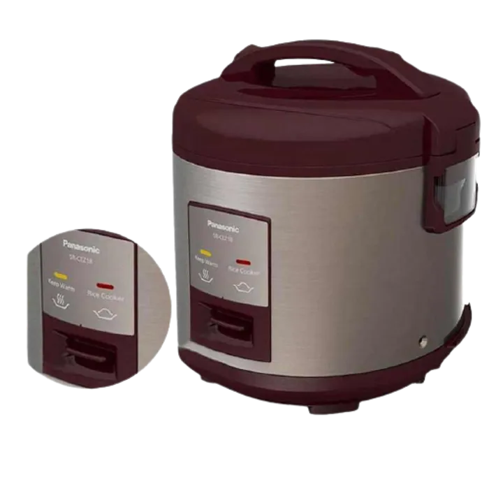 Panasonic SR-CEZ18 Magic Com 1.8 Liter dilengkapi dengan katup uap yang membuat rasa yang lebih lezat. Lapisan anti lengket yang membuat panci mudah di apat Black Flon Pan, Black Anodizing - Lapisan Anti lengket yang dapat dibersihkan. Penutup bagian dalam yang dapat dilepas sehingga mudah dibersihkan.