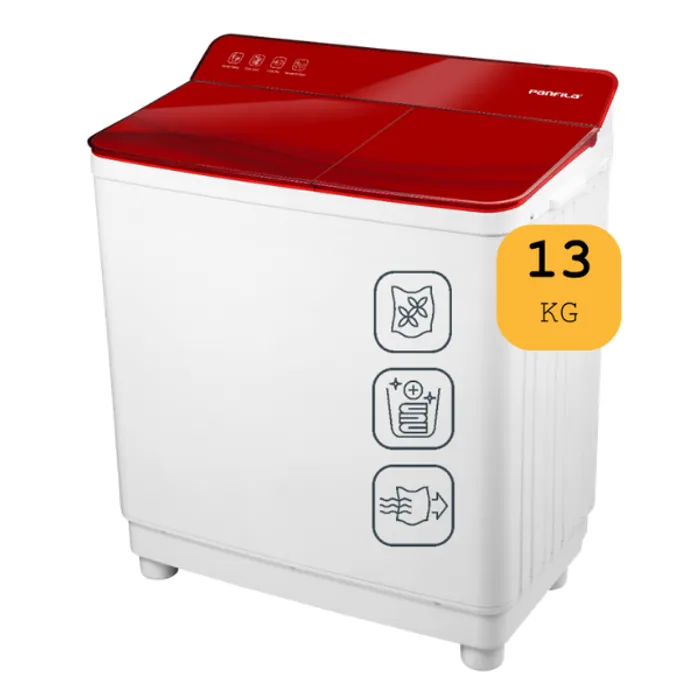 PWMS-1388 Adalah mesin cuci twintub dengan kapasitas 13 Kg untuk tabung pencucian dan kapasitas 6.5 Kg untuk tabung pengeringan.