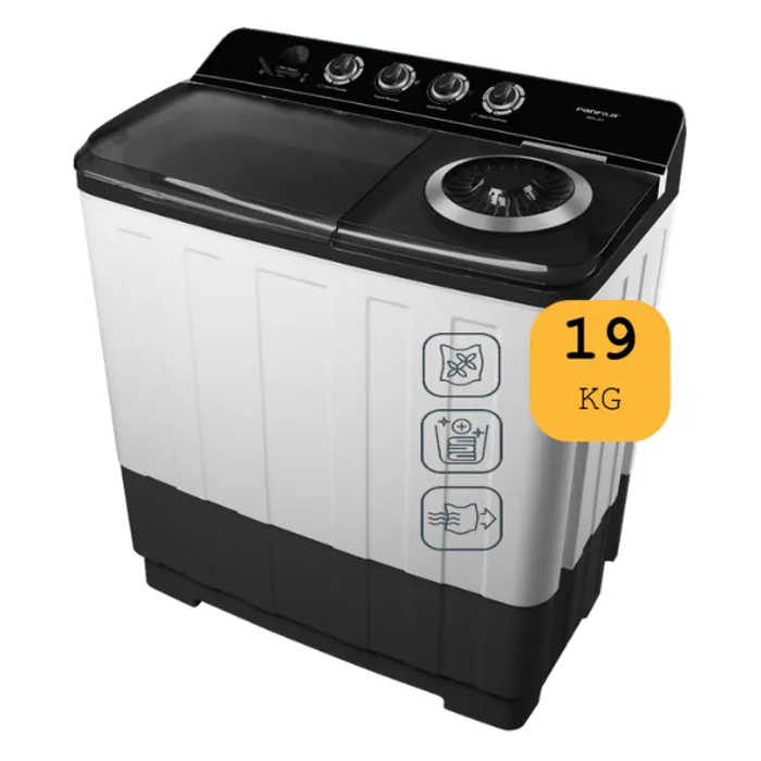 PWMS-1977 Adalah mesin cuci twintub dengan kapasitas 19 Kg untuk tabung pencucian dan kapasitas 10 Kg untuk tabung pengeringan.