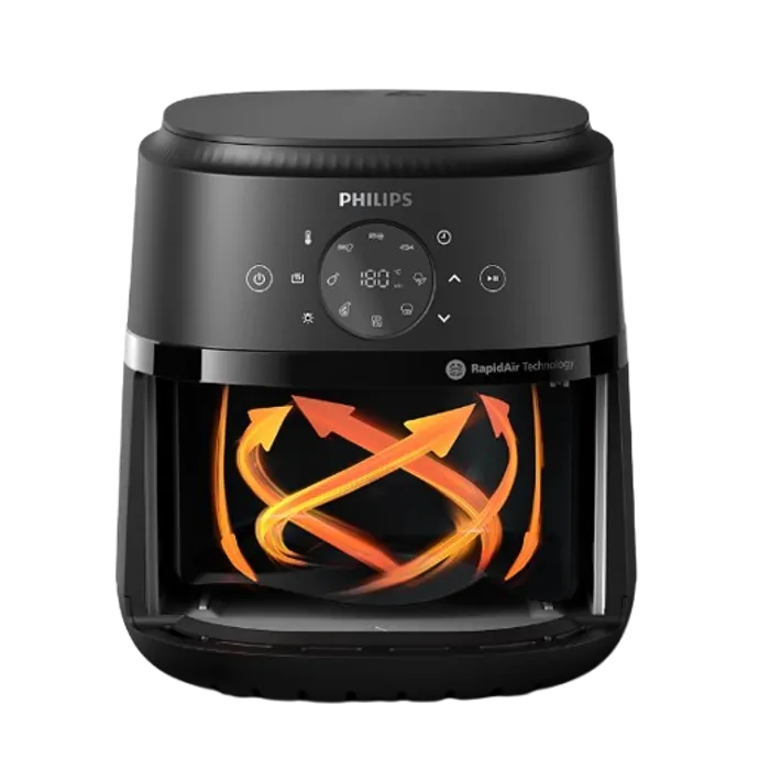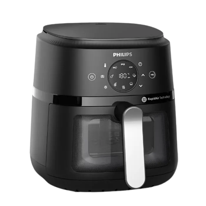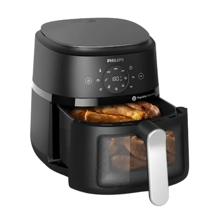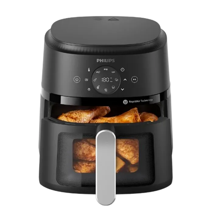 Garing di luar, lembut di dalam. Teknologi RapidAir khusus ini dapat menghemat waktu dan listrik tanpa menurunkan cita rasa. Pantau melalui jendela transparan selagi bahan-bahan makanan favorit Anda diolah menjadi hidangan lezat dalam waktu kurang dari 15 menit.