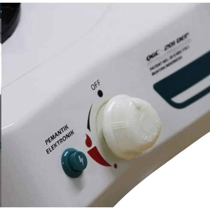 Dilengkapi tombol pemantik electrik sehingga dalam penyalaan kompor gas tinggal nut langsung nyala. Untuk power pemantik electrik tersebut menggunakan 2 buah baterai.